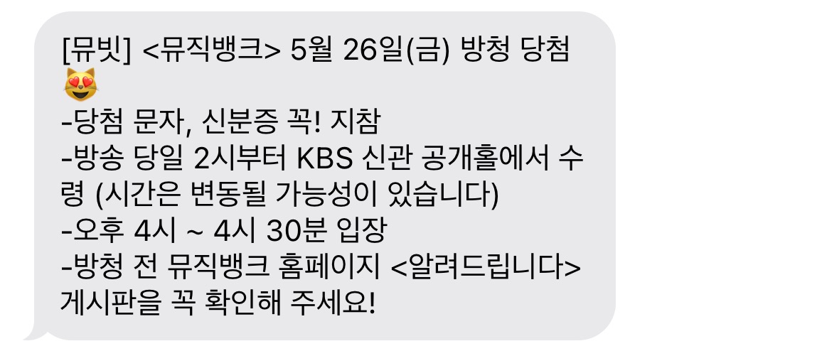 이건 또 꿀프의 행운일 수 밖에 없는 운명인지 뮤직뱅크 생방에 당첨됨 ㅋ