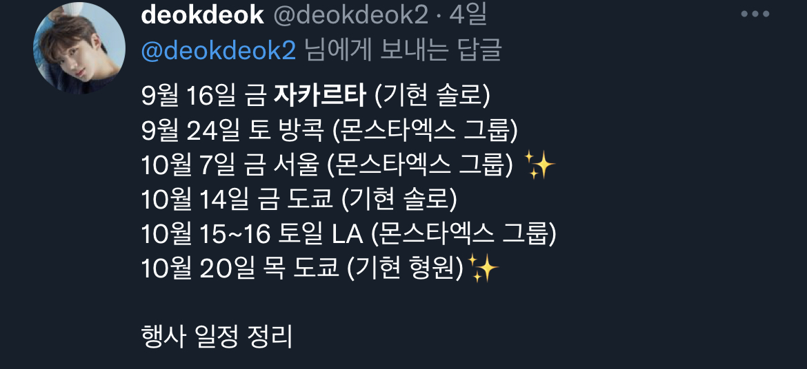누가 글로벌 케이팝 아티스트 아니랄까봐 한달동안 서울 공연은 하나밖에 없고 죄다 도쿄 방콕 자카르타..