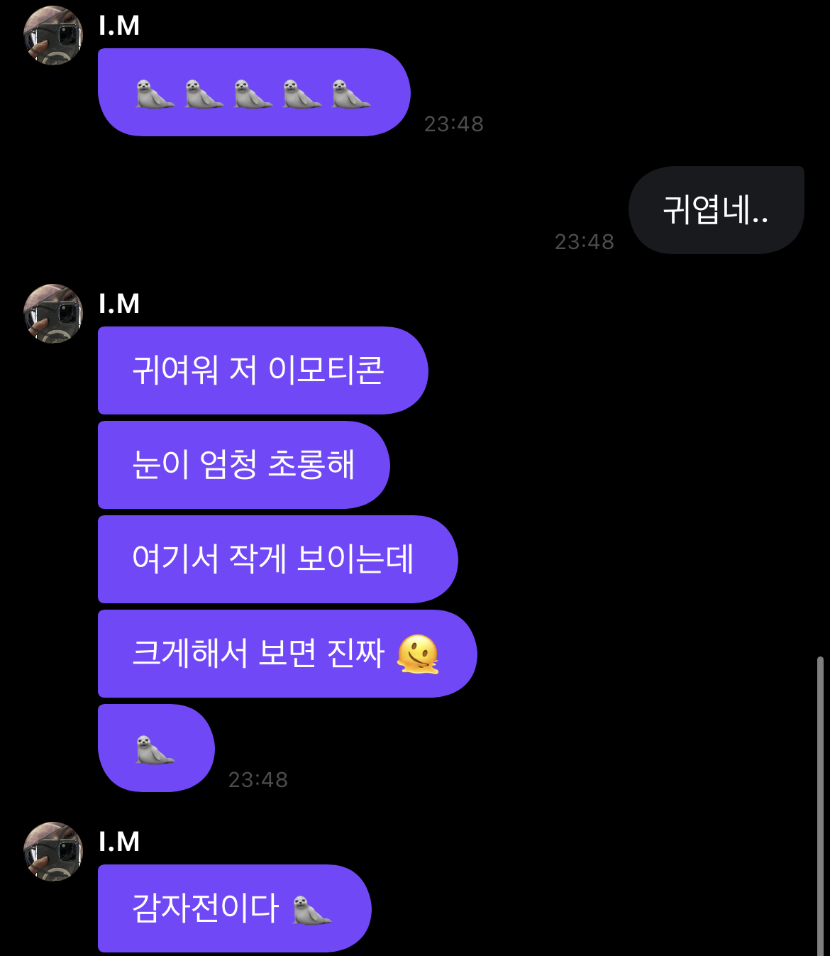 이 날 이후로 물개 없이 대화를 못하는 사람 됨..