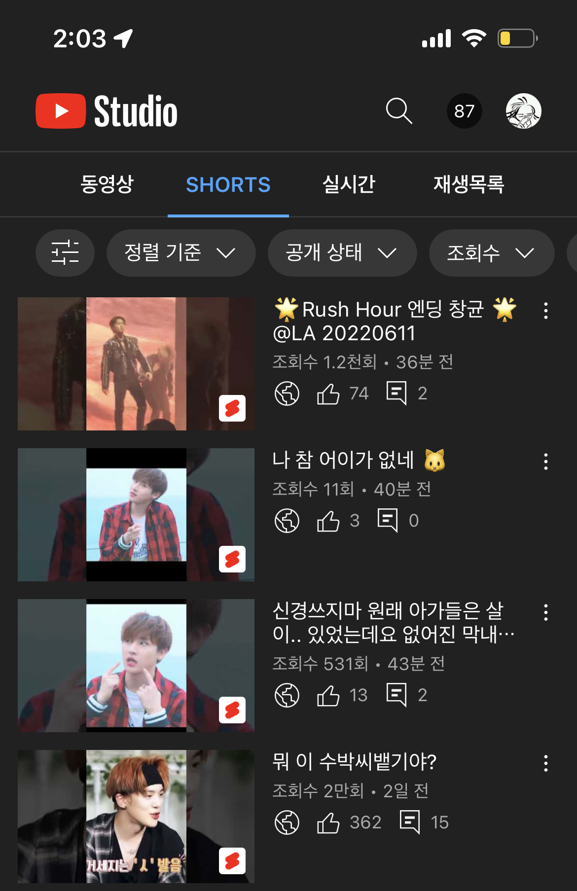 유튜브 숏츠로 찍어온거 다 올리면 연말 다 지날 듯