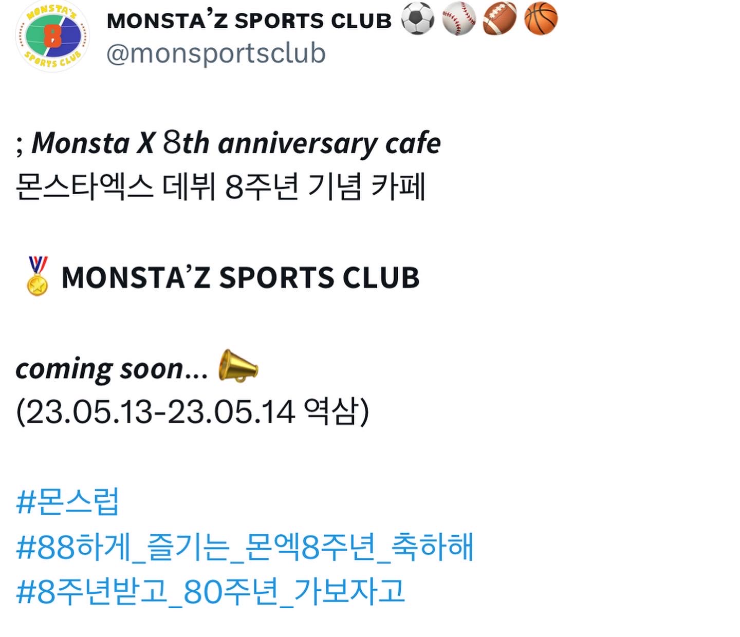 몬스타엑스 데뷔 8주년 기념 카페 준비합니다.. 이름하야 몬스타즈 스포츠 클럽 .ᐟ.ᐟ.ᐟ 몬스럽