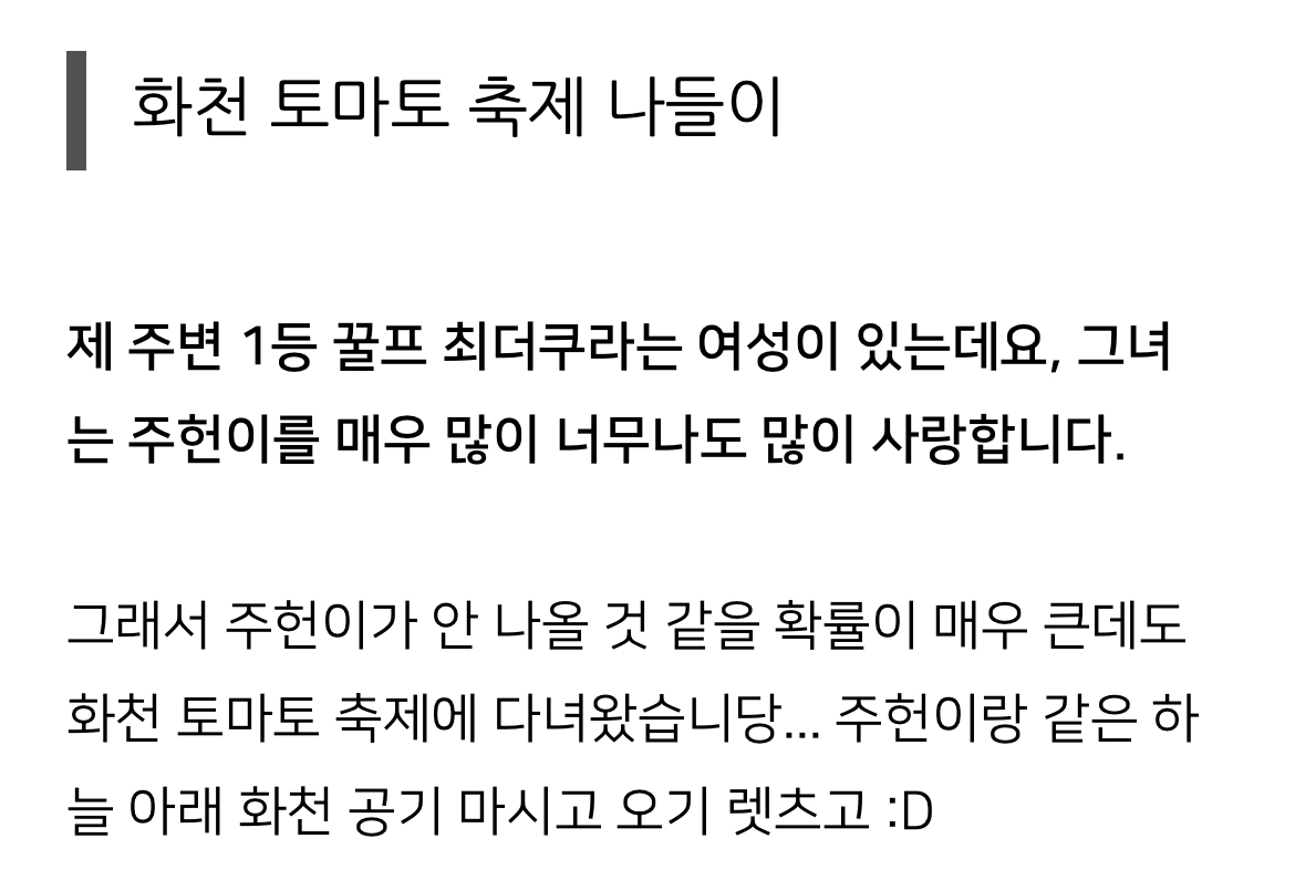 일단 급한대로 8월 초에 화천 토마토축제 다녀온걸 써야하니까