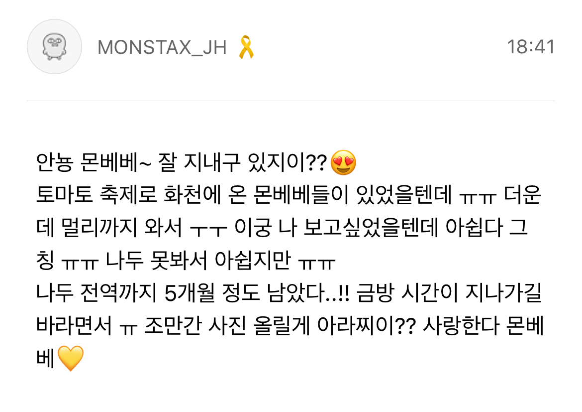 아 진짜 주헌이 보고싶어하는 몬베베들이 이렇게 많구나 싶어서 새삼 내가 다 몽글해졌더랬다