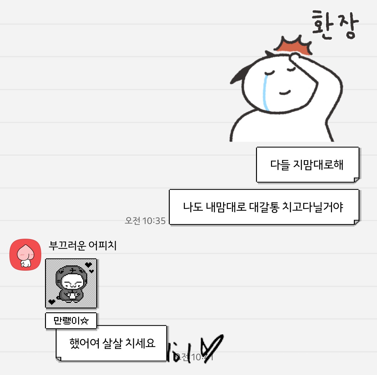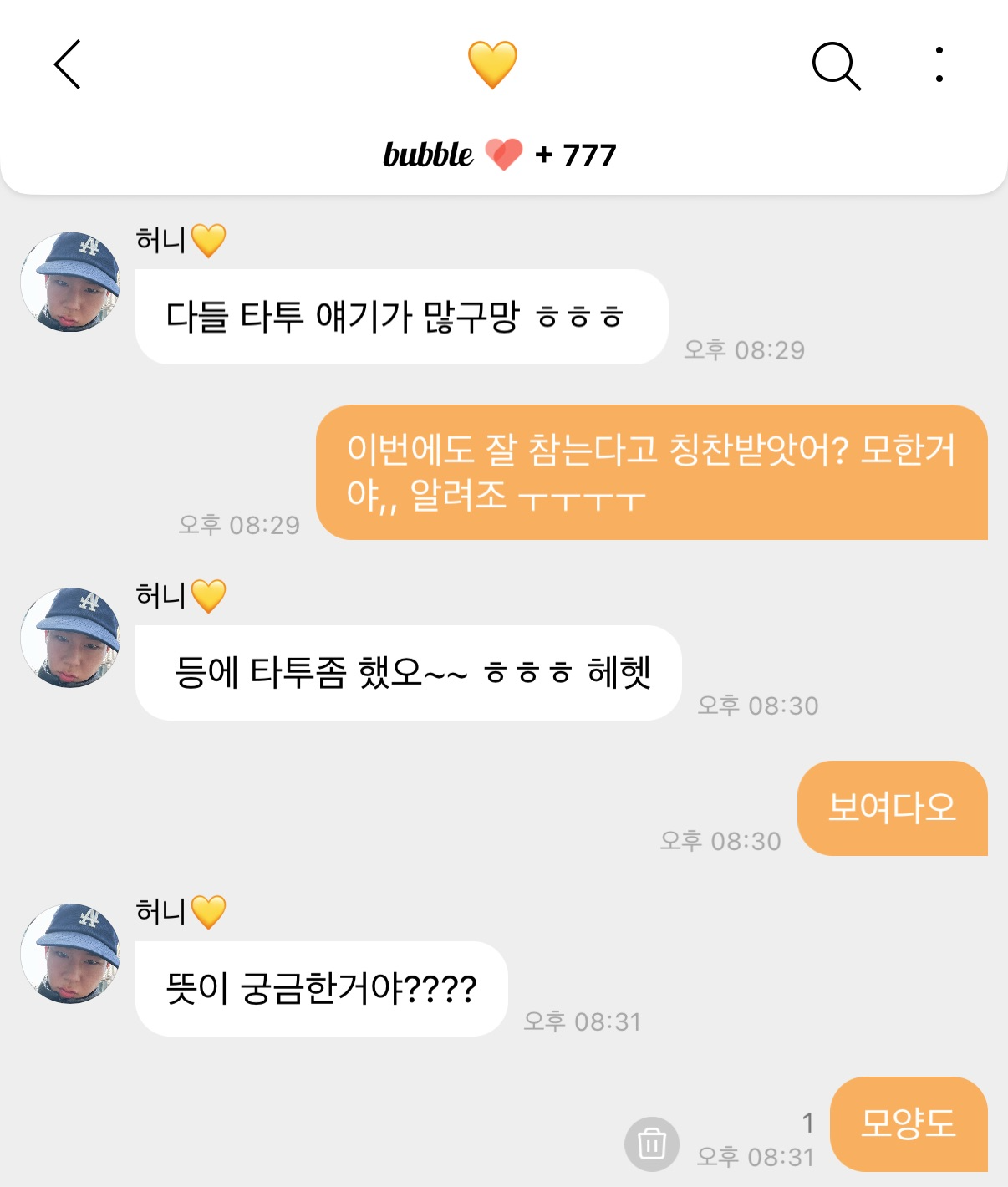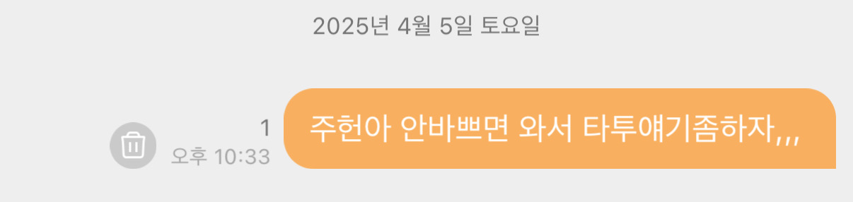 그리고 나는 주헌아 안바쁘면 와서 타투얘기좀 하자..라는 버블을 보냈고