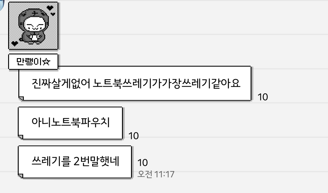 귬이 스파오 콜라보제품 라인업 보더니 진짜 살게없다고 속마음 나와서 노트북파우치 노트북쓰레기라고했어