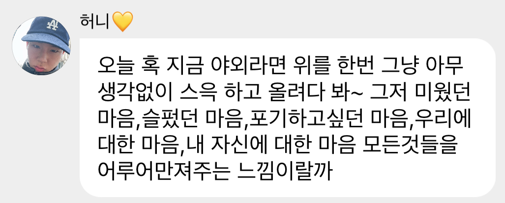 주헌이가 너무 걱정하지않고 너무 주저하지않고 항상 바라던 것처럼 순수, 열정, 열망, 사랑으로 가득차서 나아가기를 기대할게.. 🥹