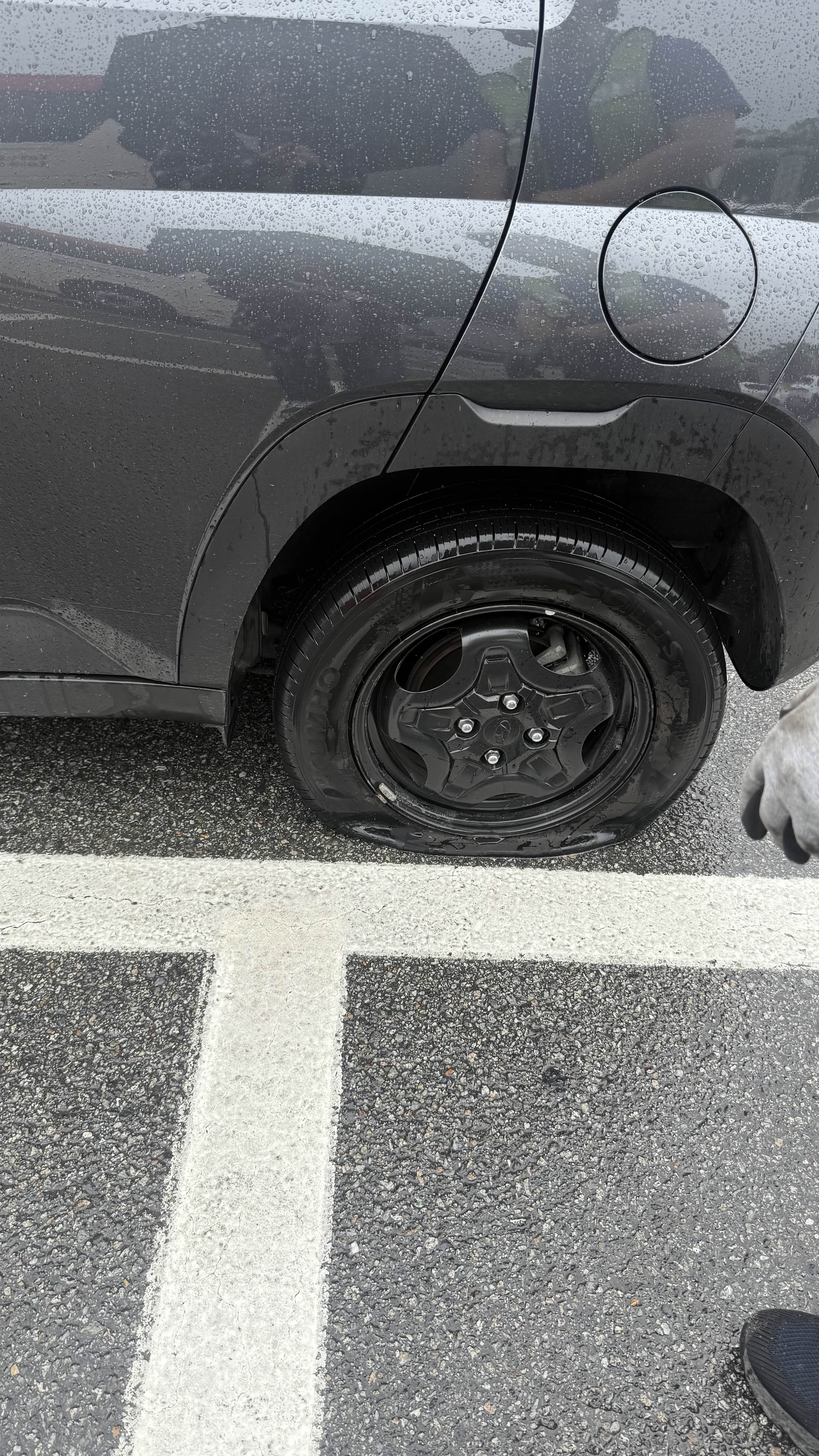 출근길에 갑자기 덜컹거리는 느낌이 들어서, 아 뭐 그럴수도 있지 이러고 가다가 갑자기 공기압 등 켜지고, 십초도 안걸려서 모든 경고등이 다 켜짐 아 진짜 이때만 생각하면 살떨려 너무 무서웠어 근데 뭔일인지를 전혀 모르고 (타이어 펑크라곤 상상도 못함) 회사에 있던 분들한테 전화해서 저 지금 갑자기 경고등 들어오고 난리인데 이게 무슨일일까요 저는 지금 경부고속도로입니다 이러고 뭐지뭐지 이러고 있는데 옆에 달리던 트럭이 너 타이어 빵꾸났다고 알려주고감 ㅠ 아저씨 감사합니다.. 그래도 진짜 럭키비키였던게 휴게소 근처여서 휴게소로 엉금엉금 기어가 주차하고 보험부름.. 하필 비도 오는 날이었고, 막내 퇴사 앞두고 마지막 점심 먹는 날이었는데 점심을 늦음 걍 사람들 다먹고 커피마실때쯤 도착하게됐었다는 슬픈이야기.. 여튼 그렇게 타이어 펑크를 임시방편?으로 채워줄 지렁이라는 것을 꽂고는 다시 출근... 저렇게 빵꾸난건 첨봄 아니근데 뭘 밟아야 그렇게 뭐 몇초 된다고 갑자기 파바박 그러냐 나진짜 무서워서 살수가없어