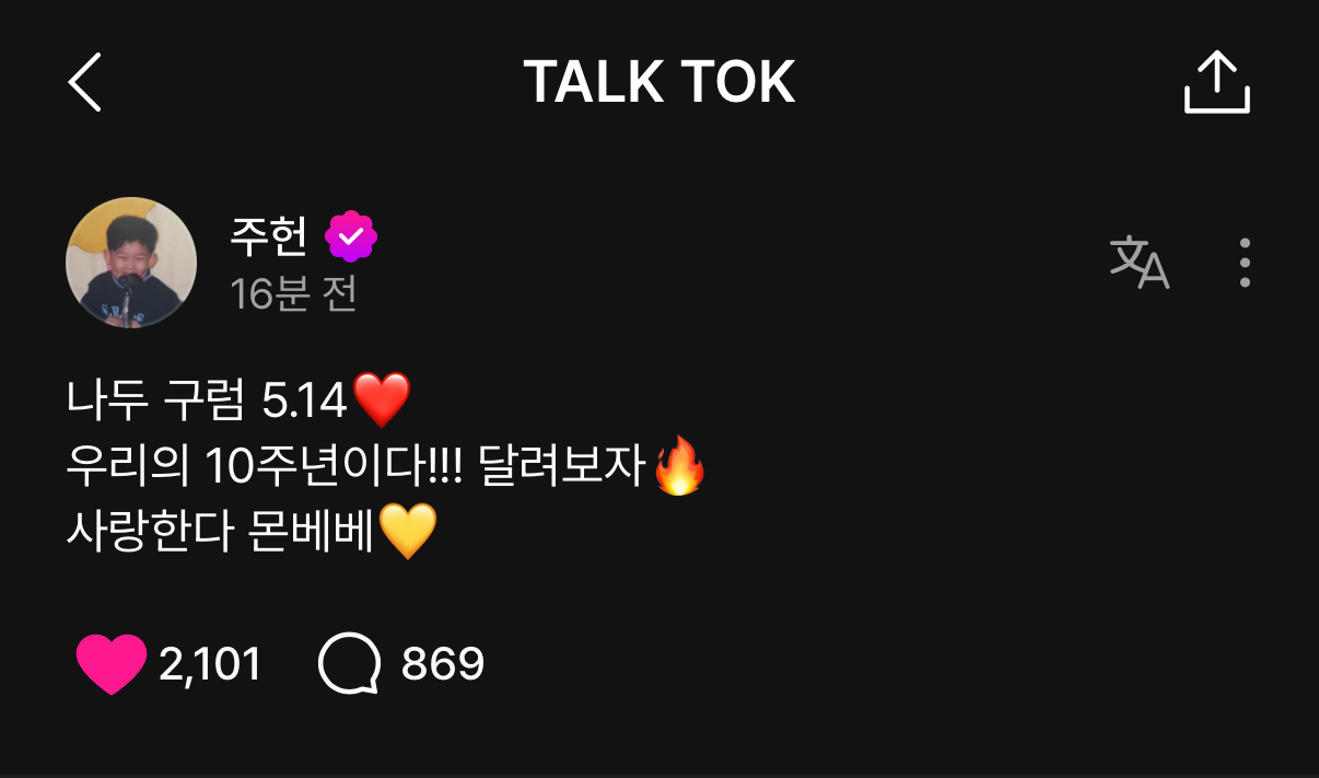 있지 나는 주헌이가 정말 훌륭한 사람이라고 생각하기 때문에, 너를 아낄 생각이 없는 어떠한 마음에는 지금 잘 하고 있듯 동요하지않고 좋은 사람들에게 받는 사랑을 더 크게 느끼고 행복한 사람이 되길 늘 바래. 그리고 그렇기때문에 나도 늘 좋은 사람이 되어야겠다고 생각하고, 니가 느낄 수 있는 사랑을 보다 더 크게 느끼게 해주고 싶어.. 이게 되게 우스운 얘기일 수도 있지만, 난 항상 그렇게 생각하고 널 응원하고 있단다.... 널 좋아하다보니 나도 좋은 사람이 되고 싶고, 좋은 사람이 되어야겠다는 다짐으로 하루를 굴리게 돼. 그러니 너에게는 좋은 사람의 좋은 사랑만이 늘 닿길 바람 🫶🏻