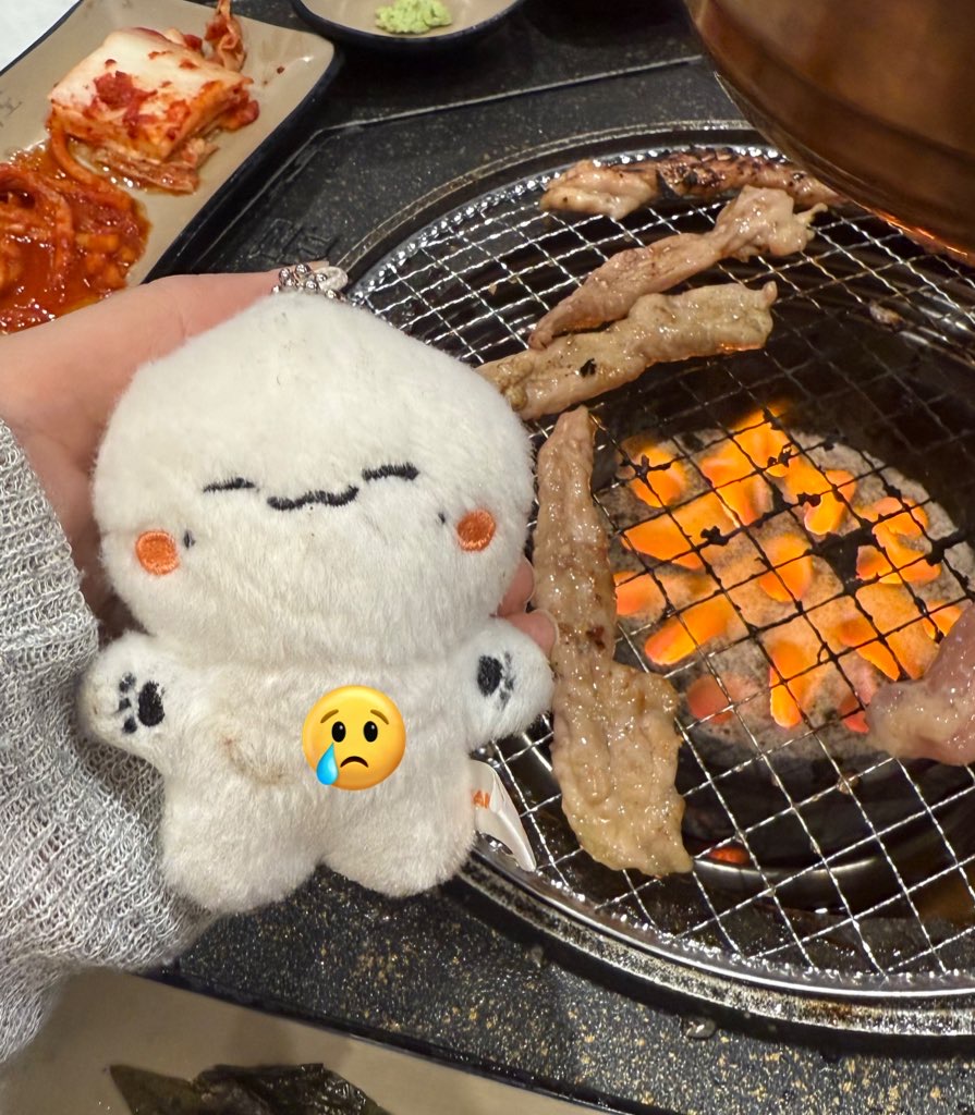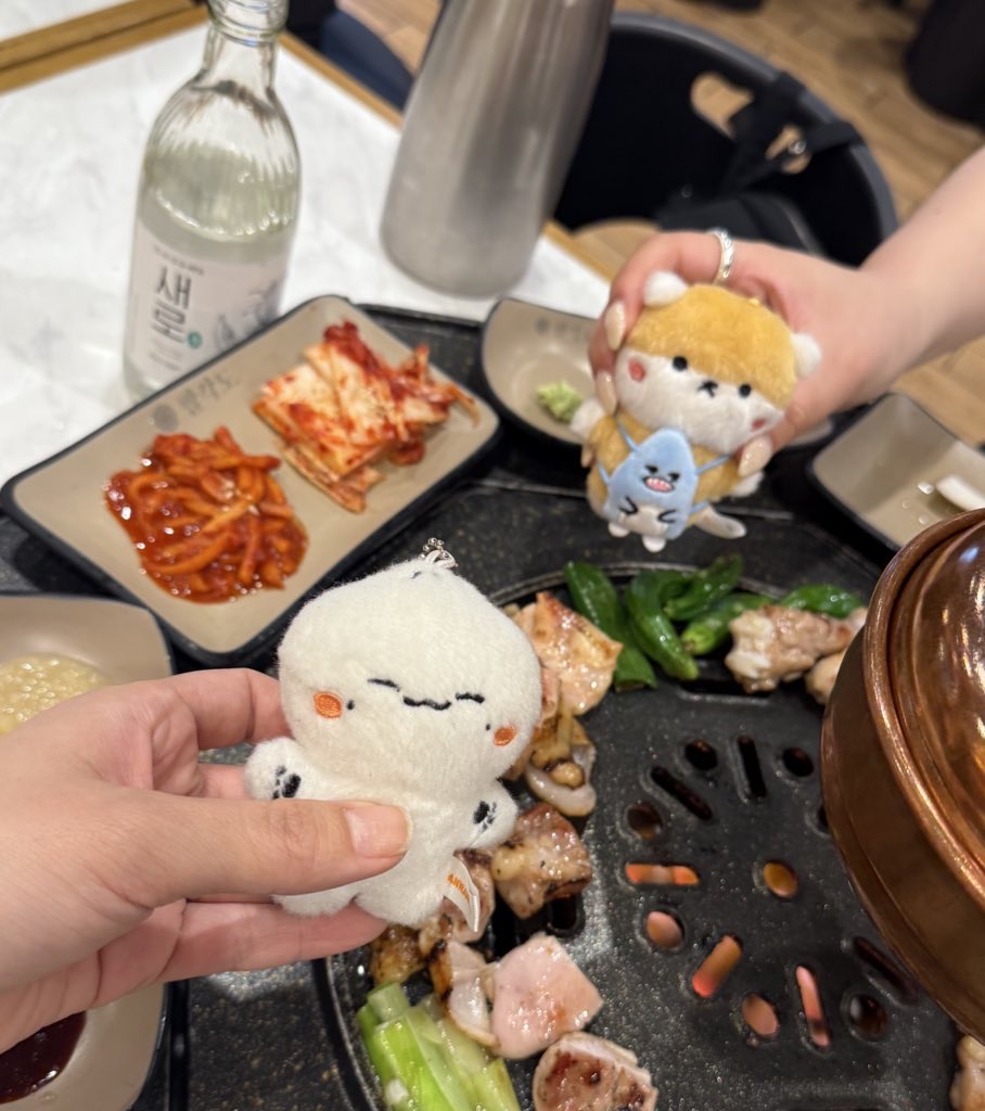 근데 예절샷 찍다가 만랭이 불판에 떨궈서 구워버림 아아아악! 가뜩이나 흰아이인데 불에 그을려버려서 너무 슬프고 속상하고 안타깝고 만랭이 너무 뜨거웠겠지.... 그래도 이때 이 사진으로 무슨무슨 공식 계정 이벤트 당첨되어서 집에 이미 있는 만랭이 핀버튼을 받게되었음. 감사합니다... 아 생각해보니 이날 만랭이 생일이었나부다 만랭아 생일축하했어 내년에도 축하해줄게 나랑 또 놀자