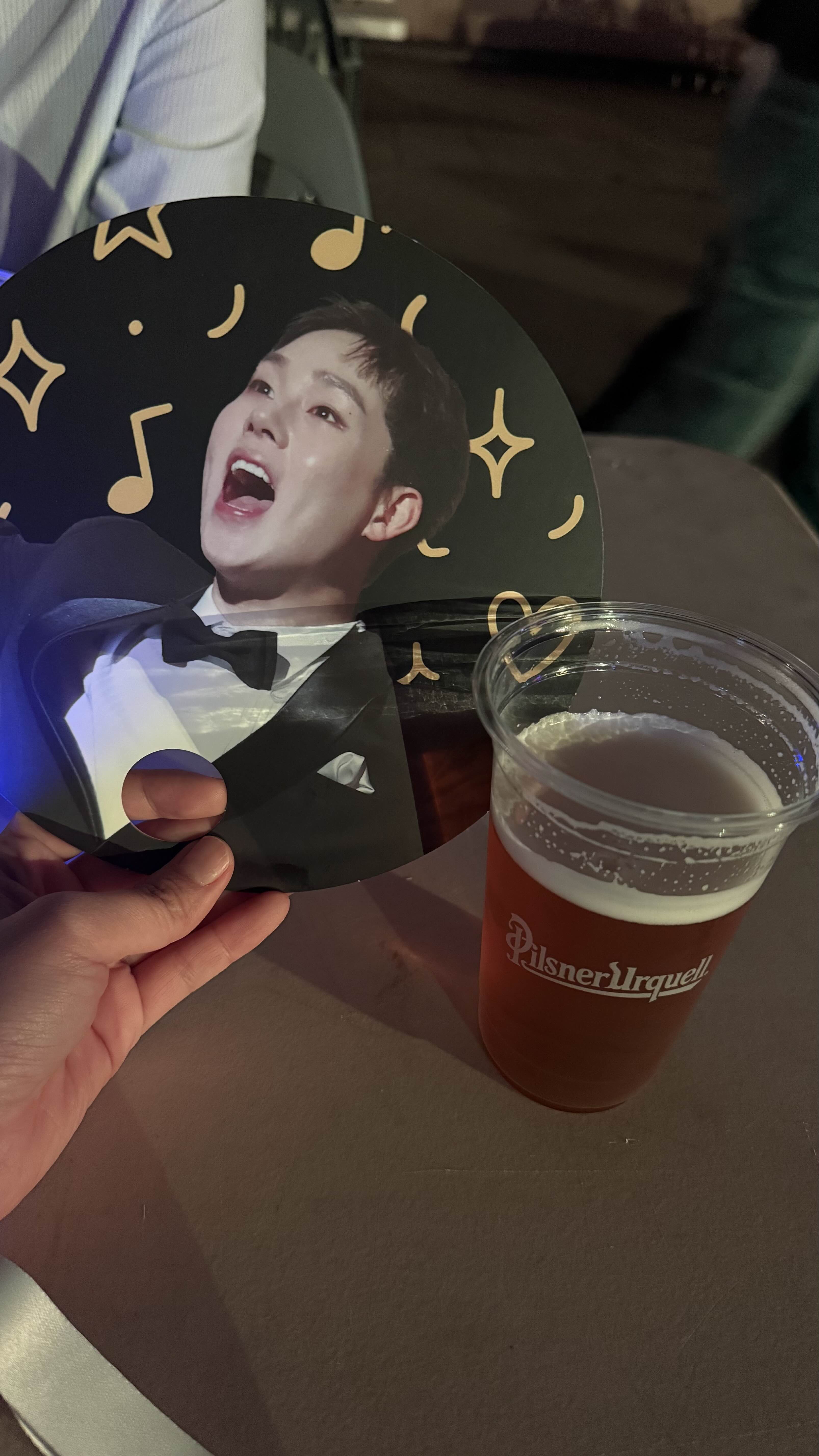 위에서 만들었던 부채 나눔.. 그거 하구 맥주도 먹구.. 주주언니 나눔 1빠로 슬로건 한장 슈슈슉 했어요. 사실 이때 주주언니를 처음만나게 되었는데 너무 좋은 언니같아서 제가 좀 들이댔읍니다. 나는 항상 주헌사랑단과 친구하고싶어. 주헌사랑을 함께 하루종일 얘기하고 싶다고.. ㅠ 근데 이 언니가 자기가 너무 질리도록 주헌이 얘기만 할수도있는데 괜찮냐고 물어보는거임.