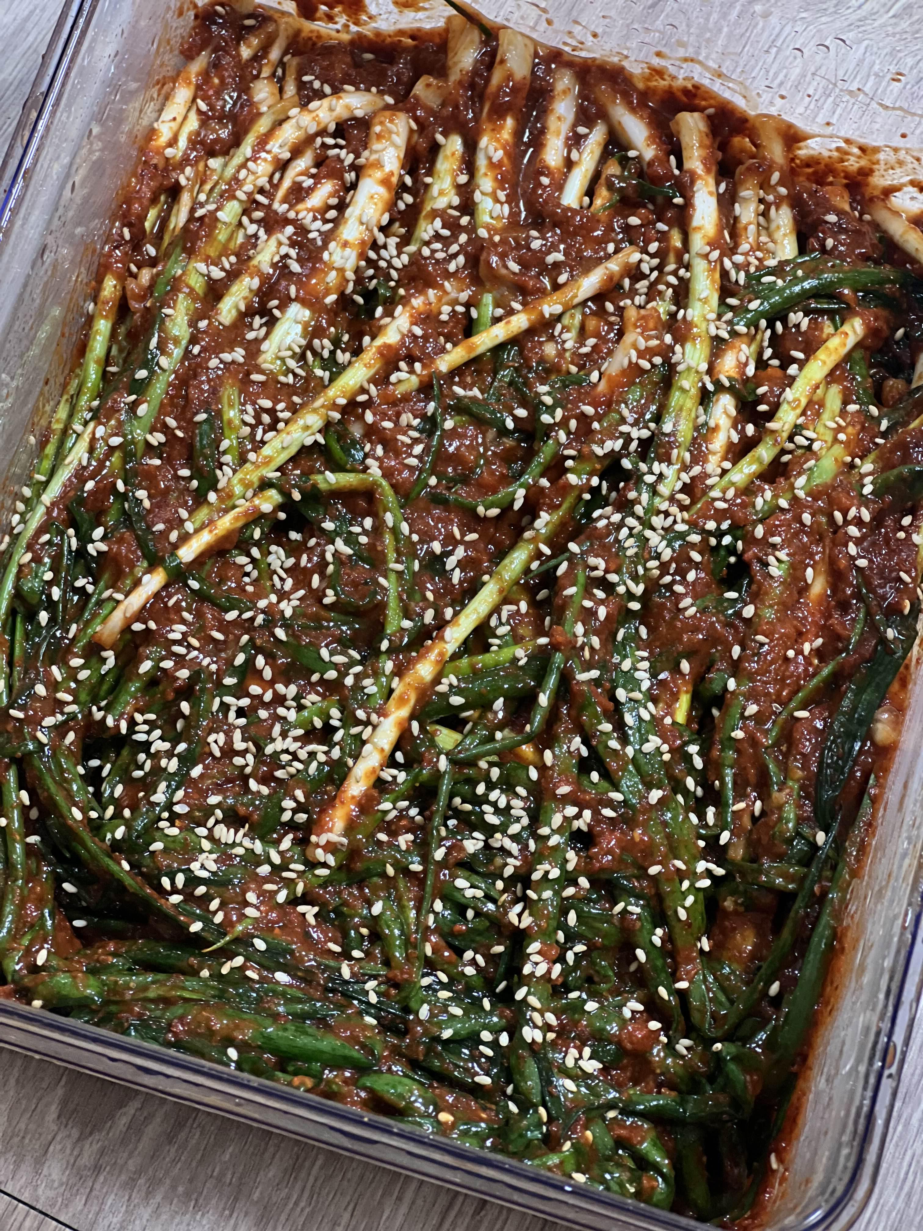 보답으로 파김치를 만들겠다고 호기롭게 파를 다듬다가