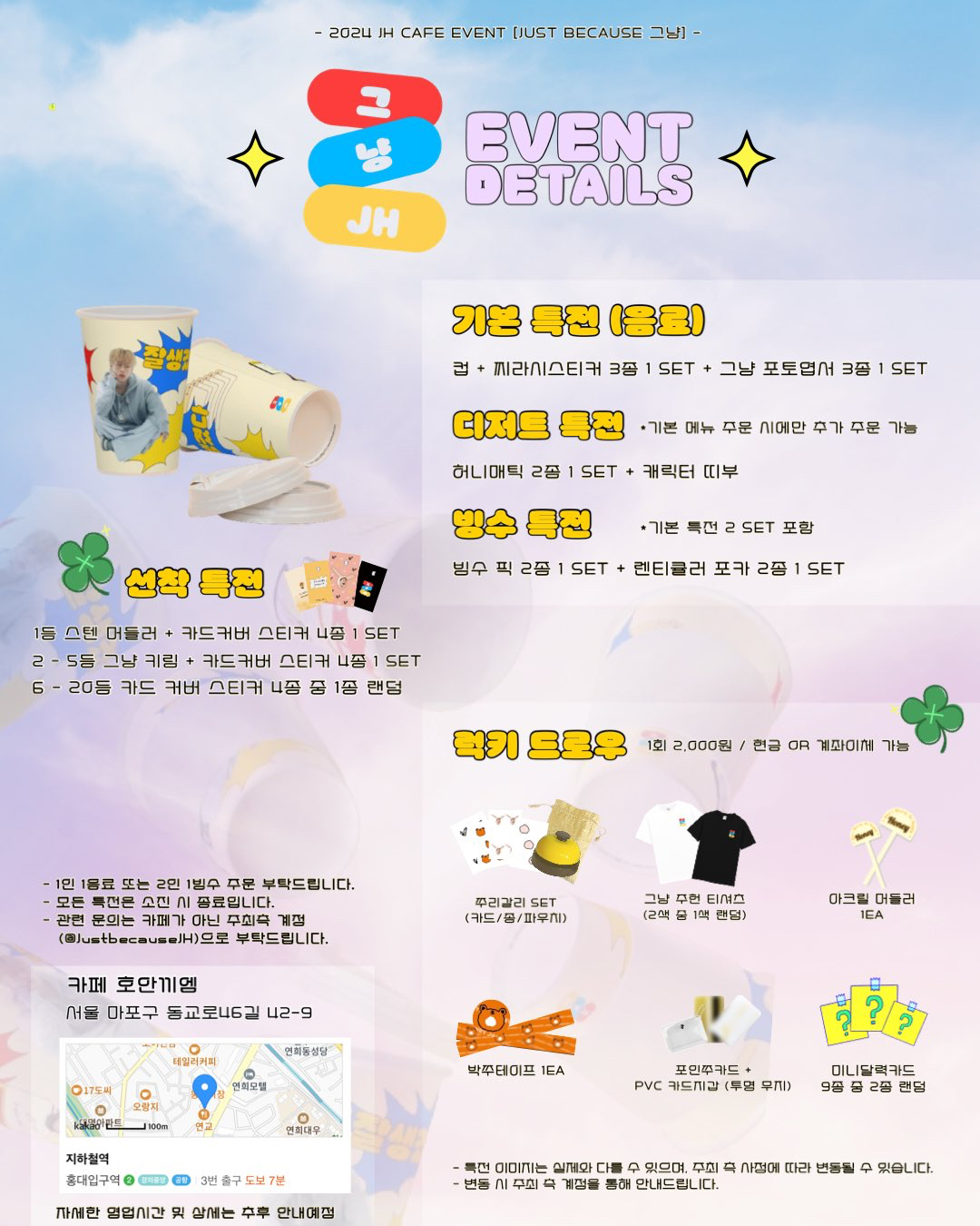 💛 그냥, 주헌 🍧 연남 호안끼엠 🕰️ 24.04.13 (sat) - 24.04.14 (sun) ╭ ⁀ ⁀ ╮ ( 주헌 ˳ ˳ ) 이가 좋아서 그냥 여는 카페 ╰ ‿ ‿ ╯ 💝 EVENT DETAILS #1 #주헌 #몬스타엑스 #MONSTAX #그냥_주헌이가_좋아